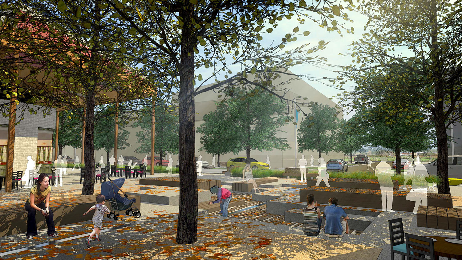 The new town centre will form a dense hub and community focus for the surrounding residential area providing retail, commercial, civic, live/work and residential opportunities on a 19 hectare site. Framed on three sides by the new Barry Curtis Park, the town centre will provide the area with a strong sense of place and identity while also fitting seamlessly into the surrounding context.